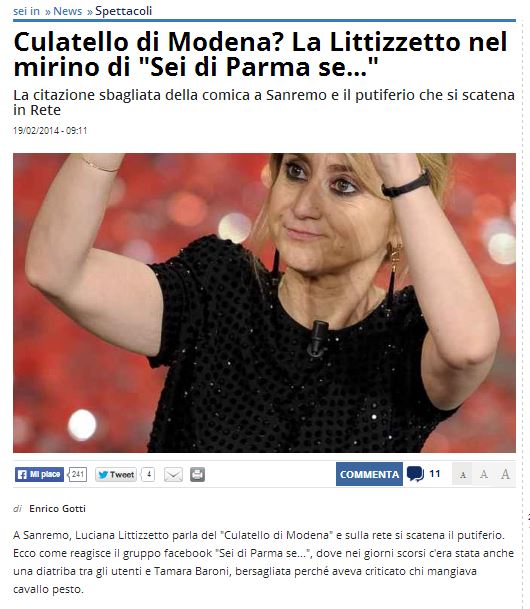 Sanremo 2014: la Littizzetto, durante la serata inaugurale del Festival della canzone italiana sbaglia la citazione e attribuisce alla vicina Modena il nostro adorato Culatello: in rete, soprattutto su Twitter, si scatena il putiferio!