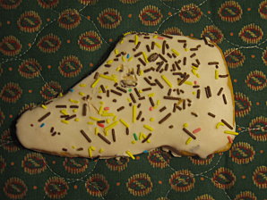 Sbattere 2 uova intere con 2 tuorli e lo zucchero, unire queste alla farina, la vanillina, la scorza grattugiata del limone e il burro ammorbidito. Quando il composto diventa omogeneo, stenderlo ad uno spessore di 5mm e ritagliare dei biscotti a forma di scarpetta. Cuocere le scarpette id San’Ilario, su una teglia rivestita di carta forno, per mezz’ora a 200° .